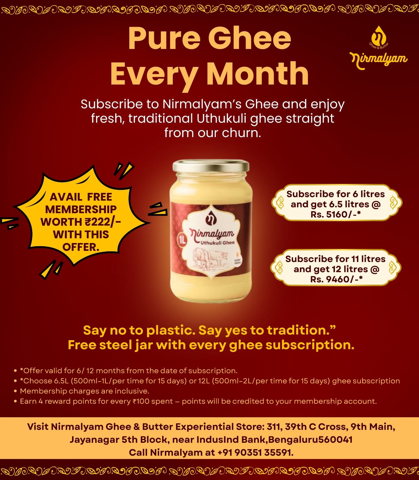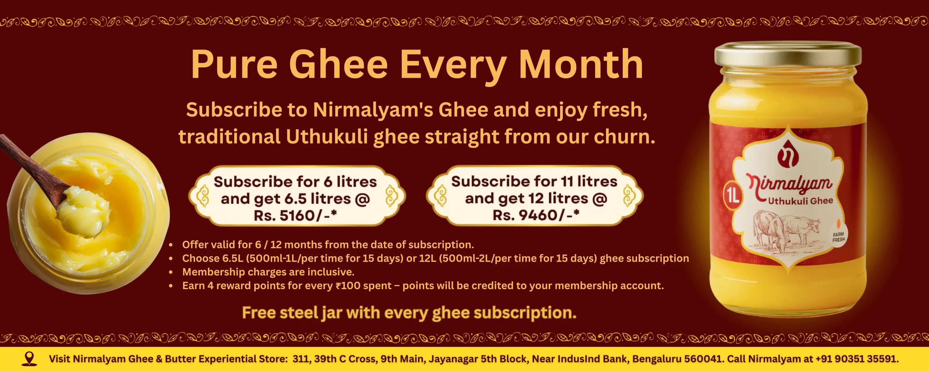Discover Nirmalyam Foods’ wide range of native delights — from Ghee, Chekku Oils, and Pickles to Sweets