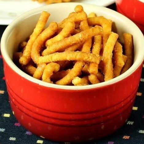 Crispy, golden, and coated with a gentle sweetness — Nirmalyam Tanjore Manoharam is a beloved traditional South Indian delicacy from the region of Thanjavur. Made with roasted gram flour and rice flour, the fried murukku pieces are beautifully blended with warm, melted jaggery to create a perfect balance of crunch and sweetness.